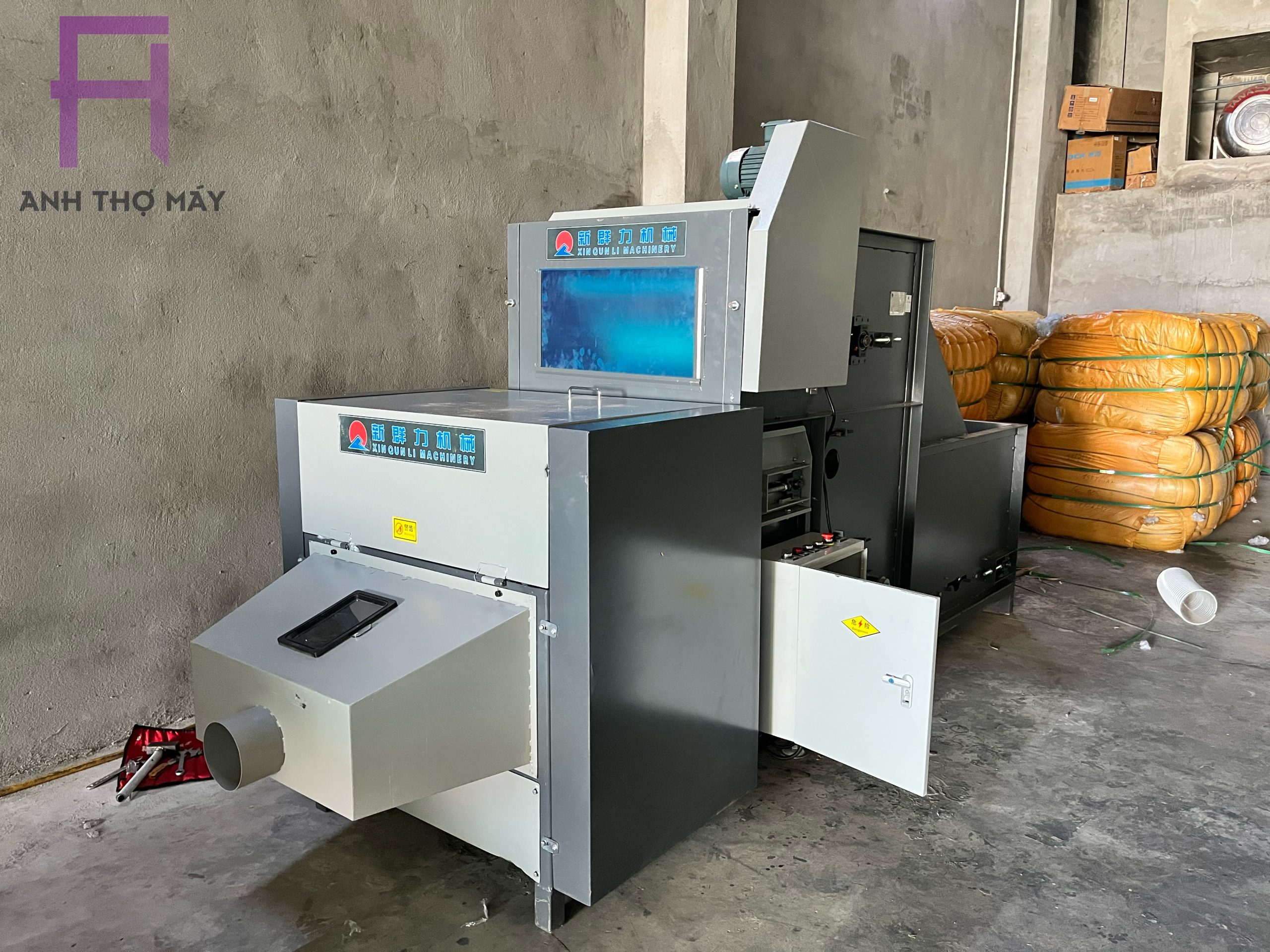 Tiến hành lắp bàn và kết nối thêm máy thổi 2 đầu vào thành một dây chuyển Rải Đánh Thổi Gòn Gối.